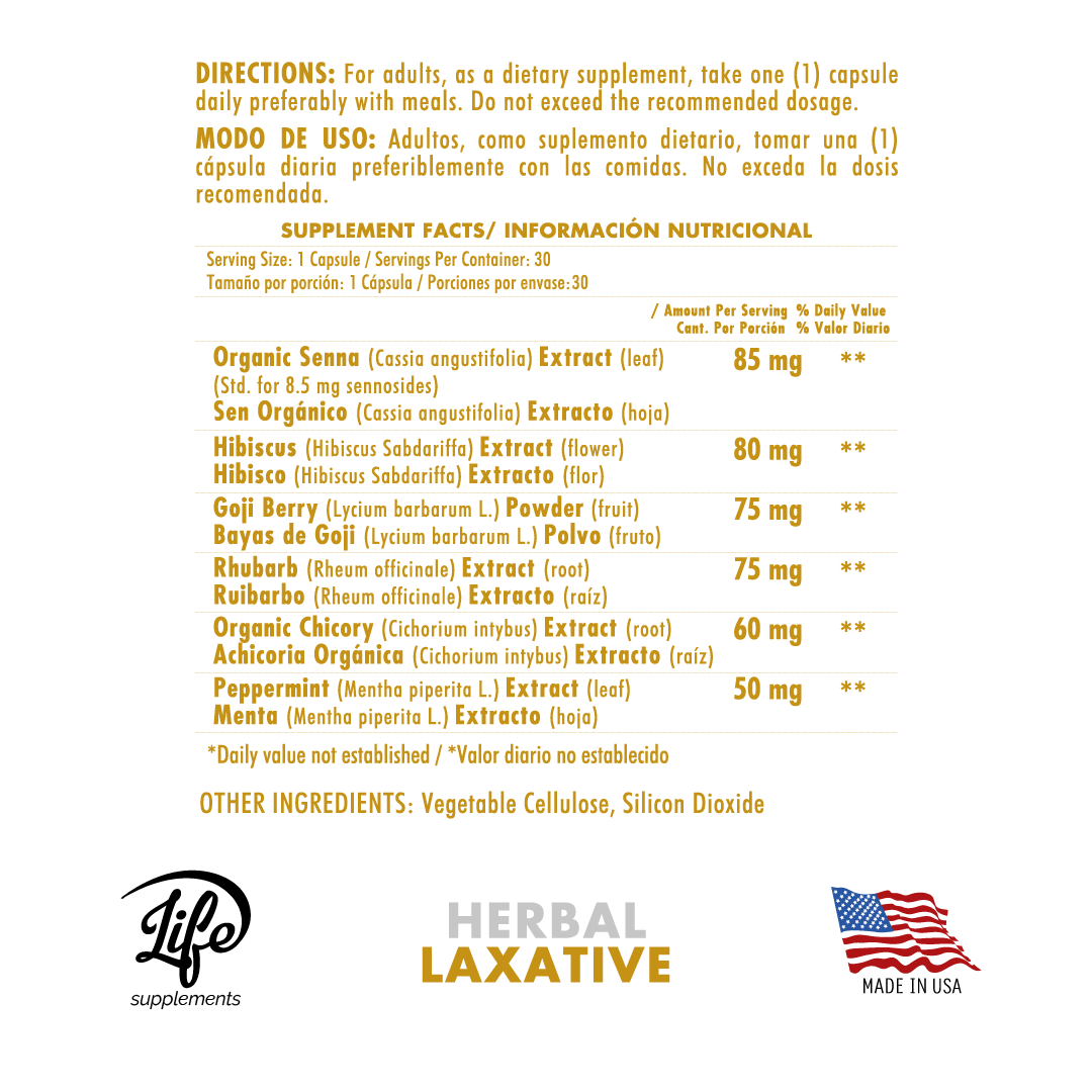 Modo de uso: Adultos, tomar dos (2) cápsulas diariamente, preferiblemente con las comidas. No exceder la dosis recomendada.